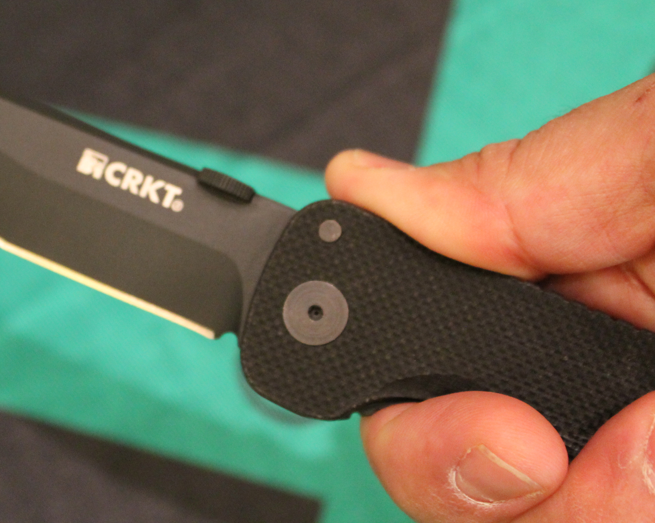 The knife is not an assisted opener, like the Hissatsu or Heiho. I am not enamored with the CRKT Outburst™ assisted opening system. Though it snaps with authority, my experience is that it takes such force to get the blade into assist mode that my opposable digit tends to fly toward the naked edge. Fortunately, Outburst can be deactivated. The OnK is just fine unassisted.