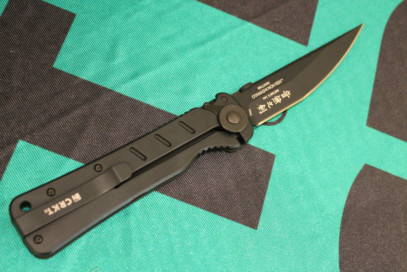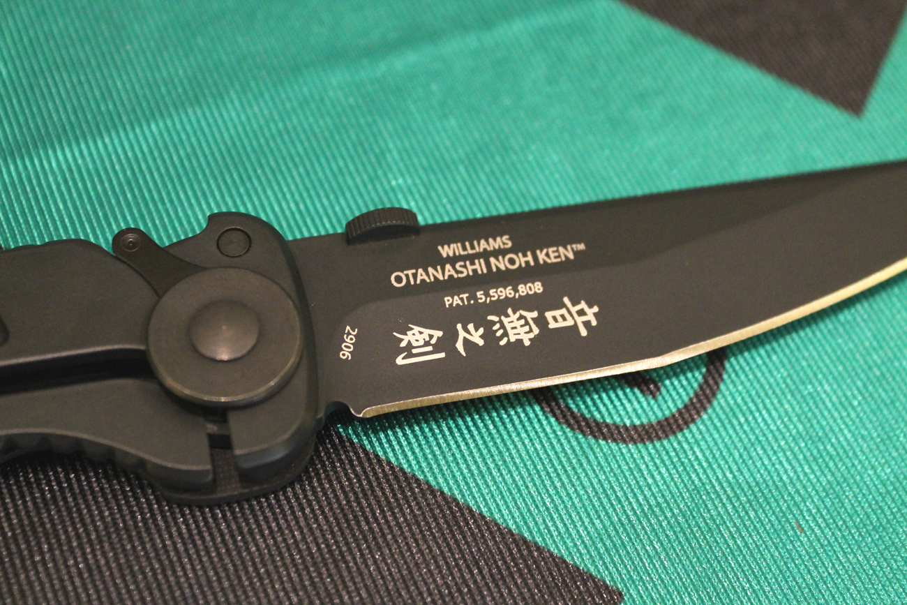 The Sword of Silence. Columbia River Knife and Tool designer James Williams states it is the Japanese translation of Otanashi noh Ken, the name of CRKT’s new folder. With its large 4.6″ tanto blade in Osoraku style, the Otanashi noh Ken resembles a pocket samurai sword. I was able to handle and photograph this prototype OnK at the 2013 SHOT Show.