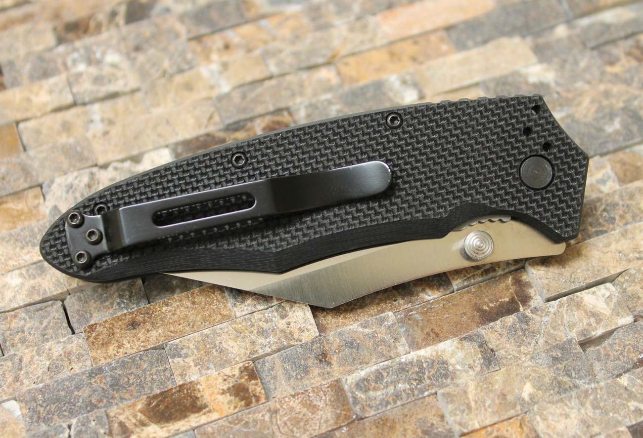 Dimensionally, the Be-Wharned is 7.85” in closed length, with a 3.4” blade. Though a weight is not given, it is in the 3.5 to 4 ounce range. It has nested 420J stainless steel liners beneath textured G-10 scales. A right/left/tip up/tip down pocket clip is done in black, as is the handle hardware.