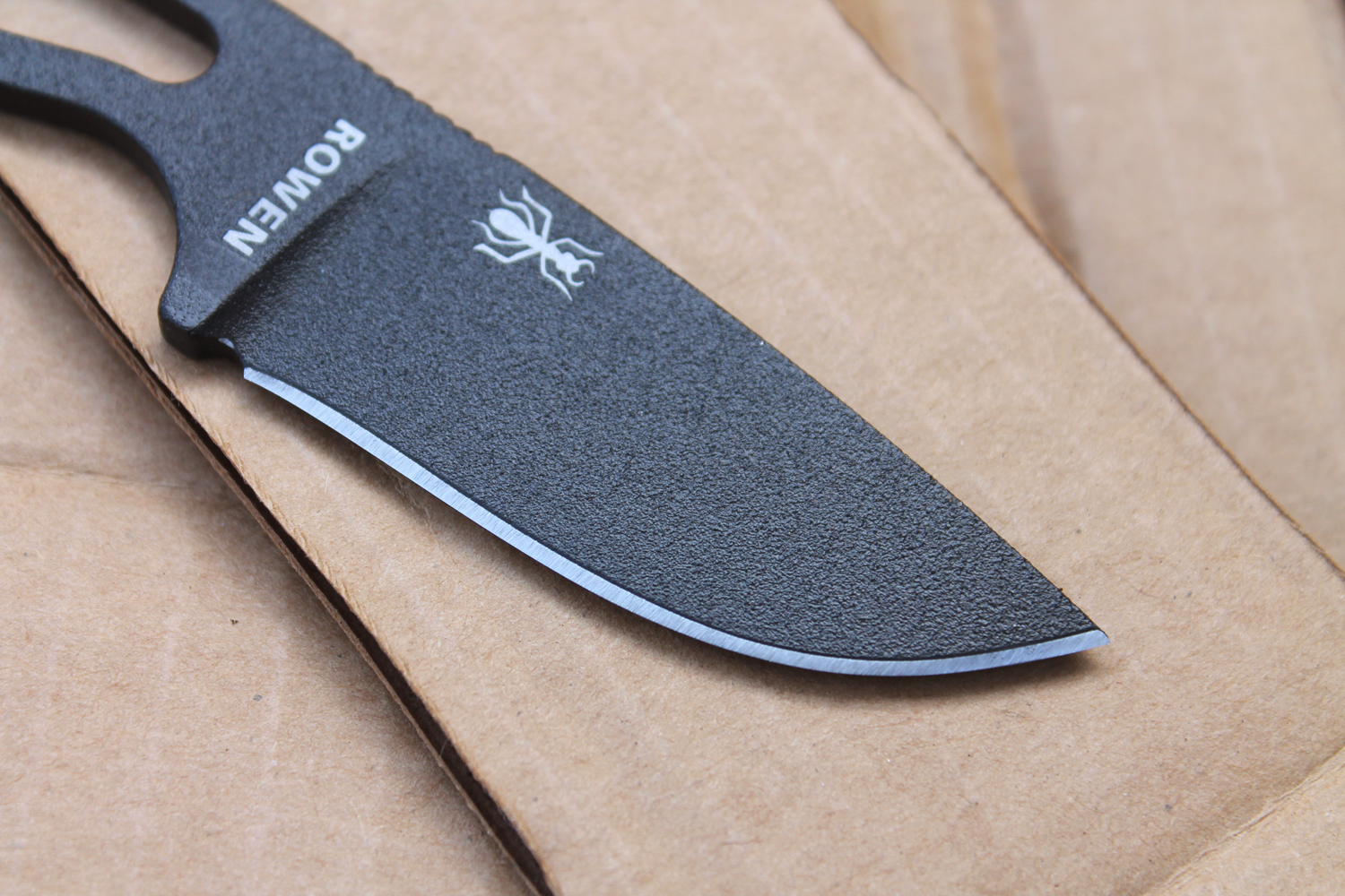 Ultimately, a knife is for cutting things (duh). Izula’s modestly-sized full tang blade of 1/8” 1095 high carbon steel, hardened to 55-57 RHC, is a serious tool for parting objects. Izula’s flat ground, powder coated blade is expertly made by Idaho Falls’ Rowen Manufacturing. My experience has been that, sans moving a rubber tree plant, the little ESEE Izula will stand up to almost all users’ small knife requirements.