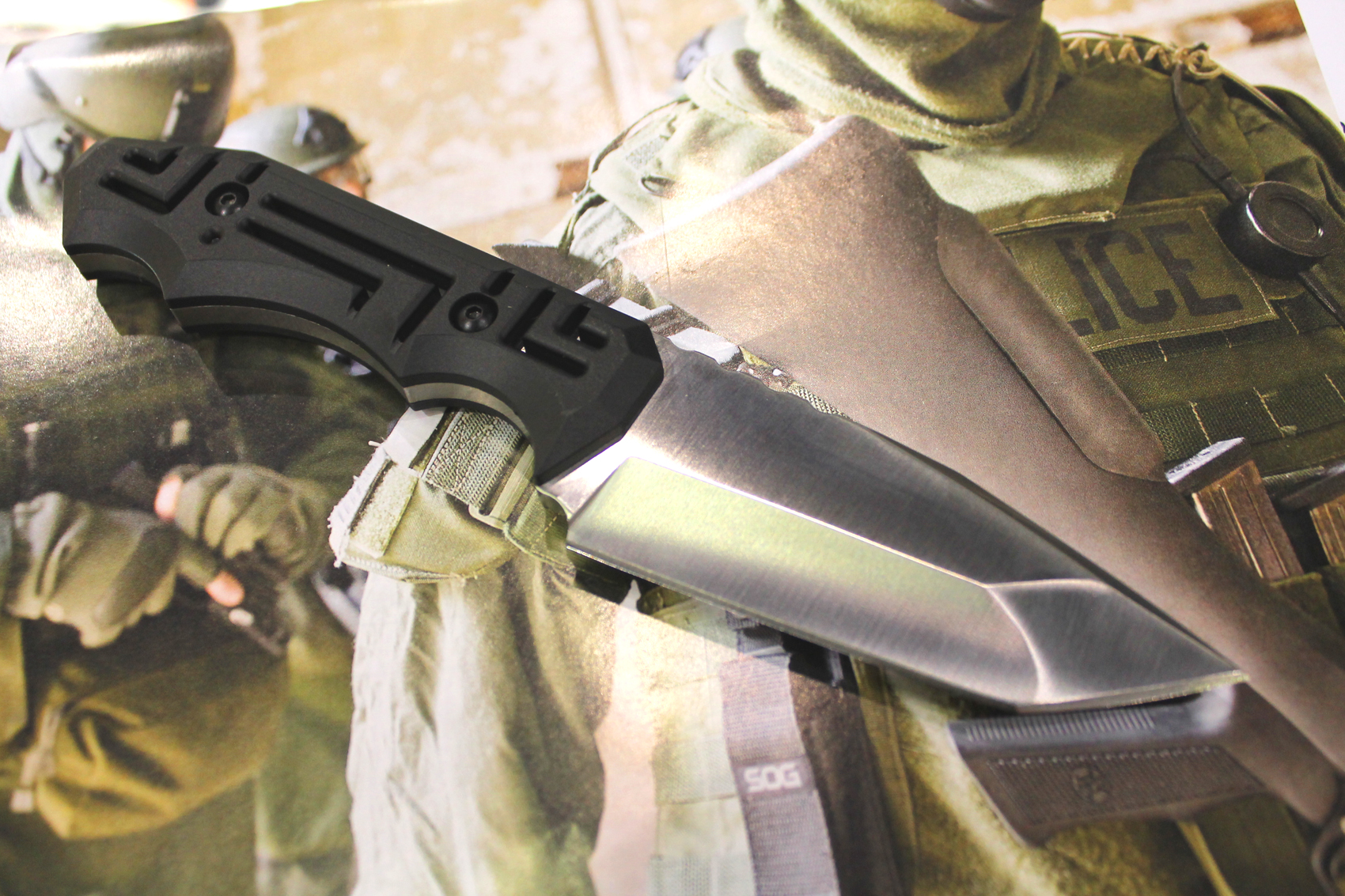 IMG_3381 IMG_3379 IMG_3378I had been to the SOG booth earlier and looked at the Growl.  Its dimensions mimic the Triple Threat, but the Growl lacks the rearmost cutting edge which is at a much steeper degree than the other two primary bevels.  I asked Jason why SOG did not replicate all three grinds.  Cost, he surmised.