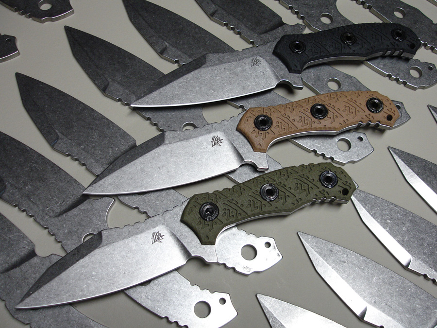 In conversing with DJ at Blade Show, I found out that he, too, had a collaboration with a “big maker,” much like Jason Brous. He said it was for his Colubris model. DJ had just done a semi-custom production run of Colubris’ that he called Mid-Techs. This partnership with the large manufacturer would bring his design out at a lower price point.