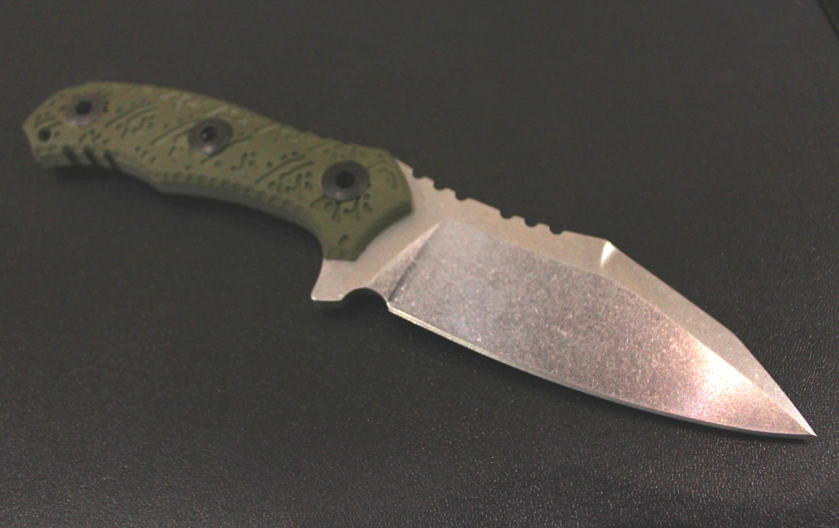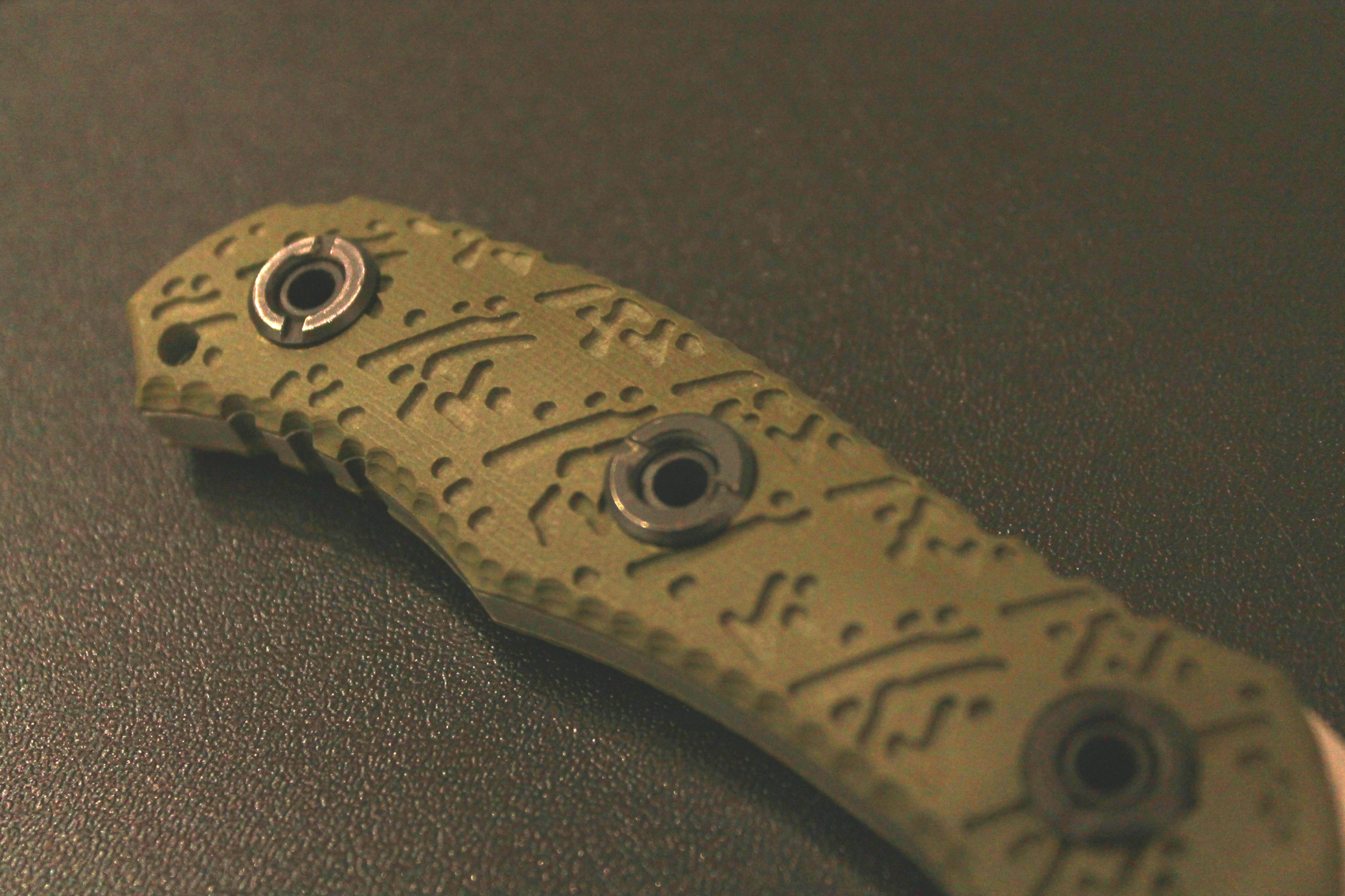 Since I had gotten to hold one of his American Kami Colubris’ at the table, I felt I could make a fair comparison between the custom and production models. The Boker proto was visually a true doppelganger to the original. I was told at Boker that the new model would be made of tumbled 3/16th” 440C and have OD green G10 scales. Even the handle bolts and AK logo pattern in the scales are the same styles as on the American Kami version.