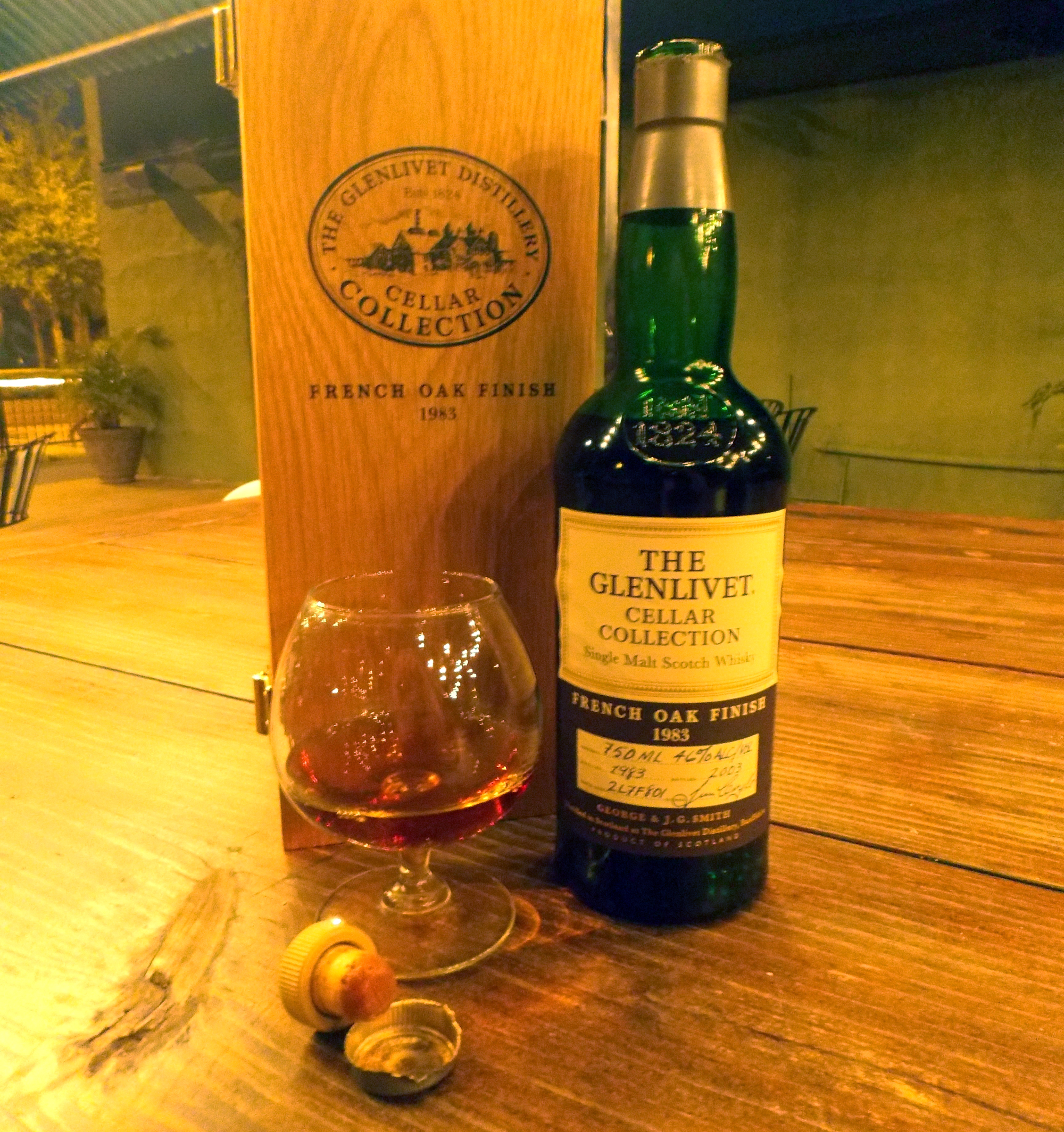 This past Sunday I was provided a monumental birthday gift. I was lucky enough to receive a bottle of scotch that shared my birth year. The Glenlivet limited edition 1983 French Oak Finish was the fourth of an elite Cellar Collection produced by Master Distiller Jim Cryle. It was released in 2003 and has been described as one of the more complex Glenlivet’s to date. In 1983 the journey began for this bourbon and sherry barreled whiskey when some of the most exceptional casks were hand picked and set aside. In 2000 Cryle chose some of these select “intense spirits” and transferred them into new, lightly roasted, French Limousin casks for their final three years of aging. After 20 years, the best of these French oak finished whiskies were bottled for the 1983 French Oak Finish as the final member of an elite Cellar Collection. It should be noted that of the 8,000 bottles that were produced in this limited edition, only 3,000 were sent to the United States in 2003.