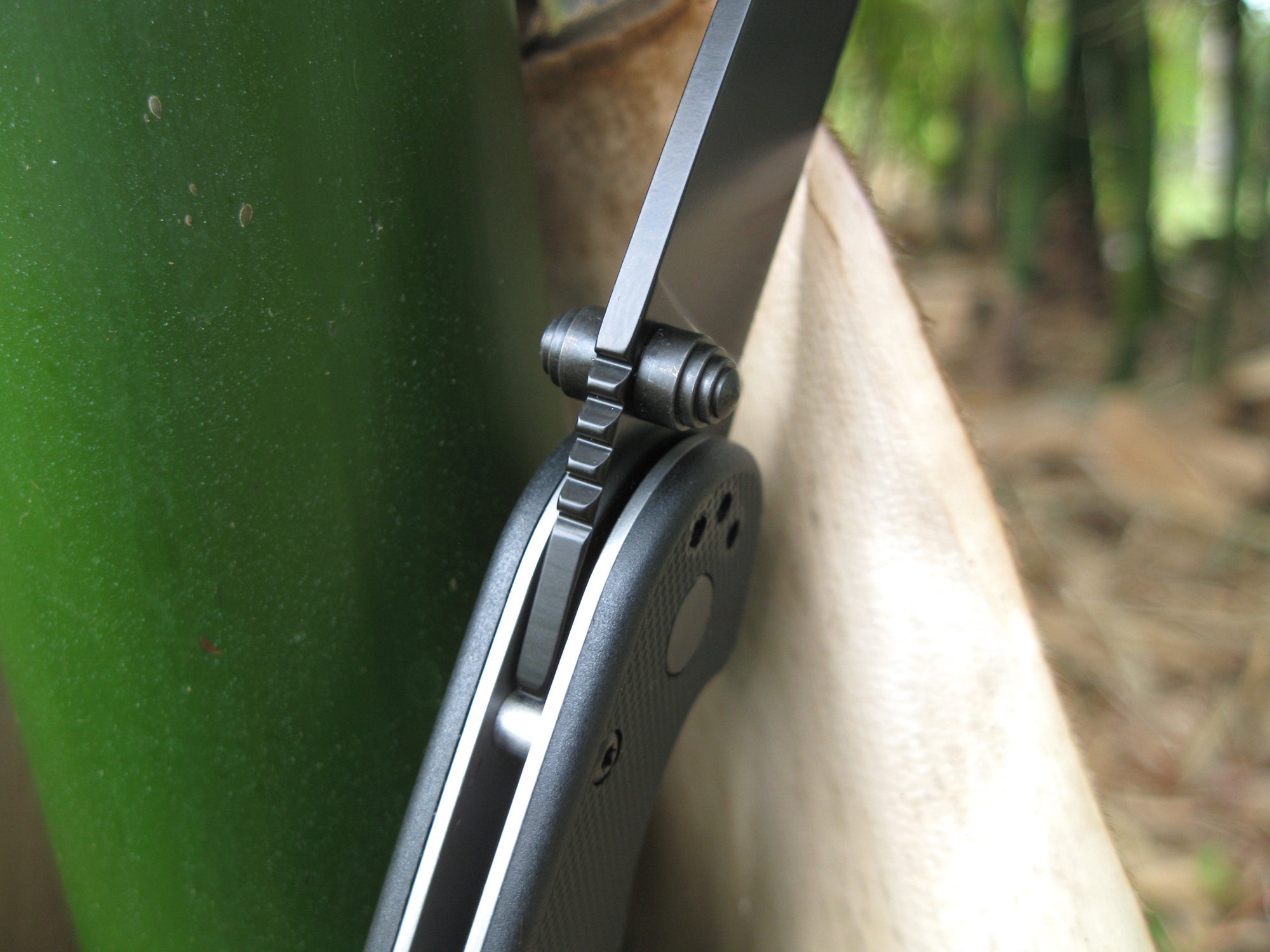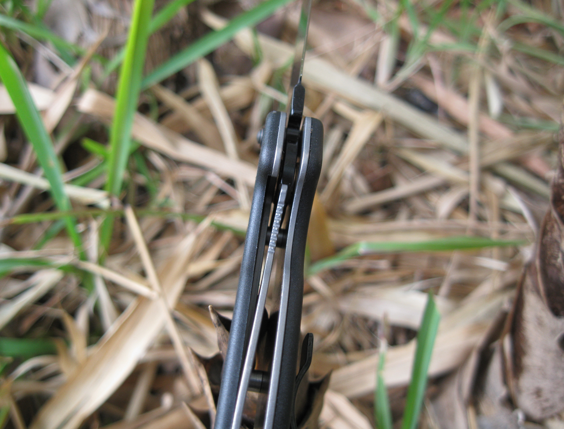 Ah, on to the intrigue…  I was intrigued by the RAT II’s reported 2.8 ounces, despite it having full stainless steel liners.  Posts replace a backspacer, freeing up mass.  The liners and posts are bead blasted and provide a nice contrast to the remainder of the RAT II’s blacked out exterior.  Ontario screws on lightweight FRN scales that very much simulate the look and feel of a G10 composite.  All this adds up to the light feel.