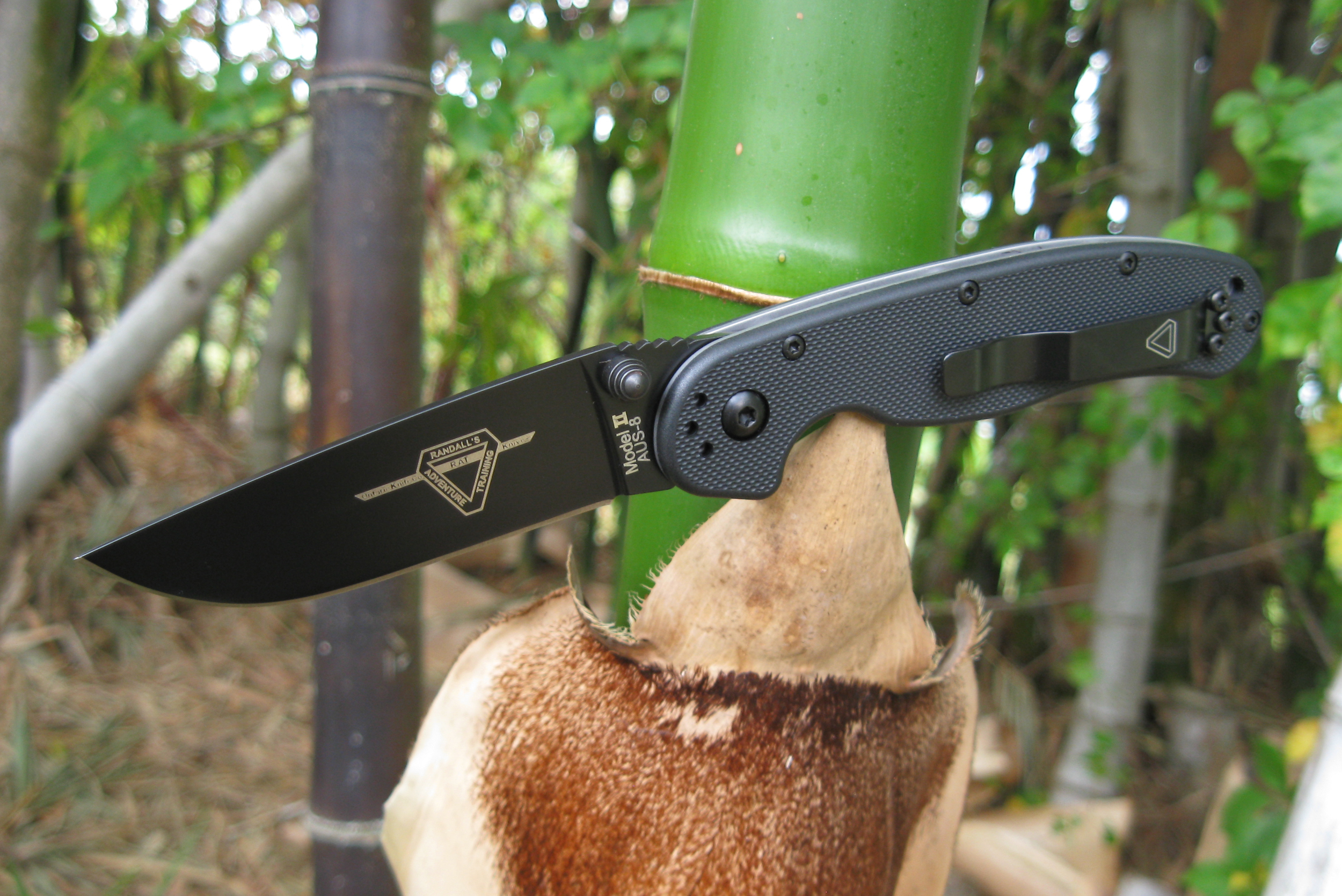 Ontario RAT 2I had no idea there would be a backstory of deceit and intrigue when I did a little research on the Ontario Knife Company‘s RAT Model II folder I had just stolen for under $30.00–with shipping.  When I saw the original Ontario RAT I folder, I liked its utilitarian appearance.  It reflected the Randall’s Adventure & Training reputation for rugged exploits, but it was a bit large for my needs as my current “Amazon jungle” has a woven synthetic floor and a drop ceiling canopy.  An Ontario RAT II folder, with a 3 inch blade and OAL of 7 inches, was more slacks-worthy than the Model I’s BDU-friendly dimensions.