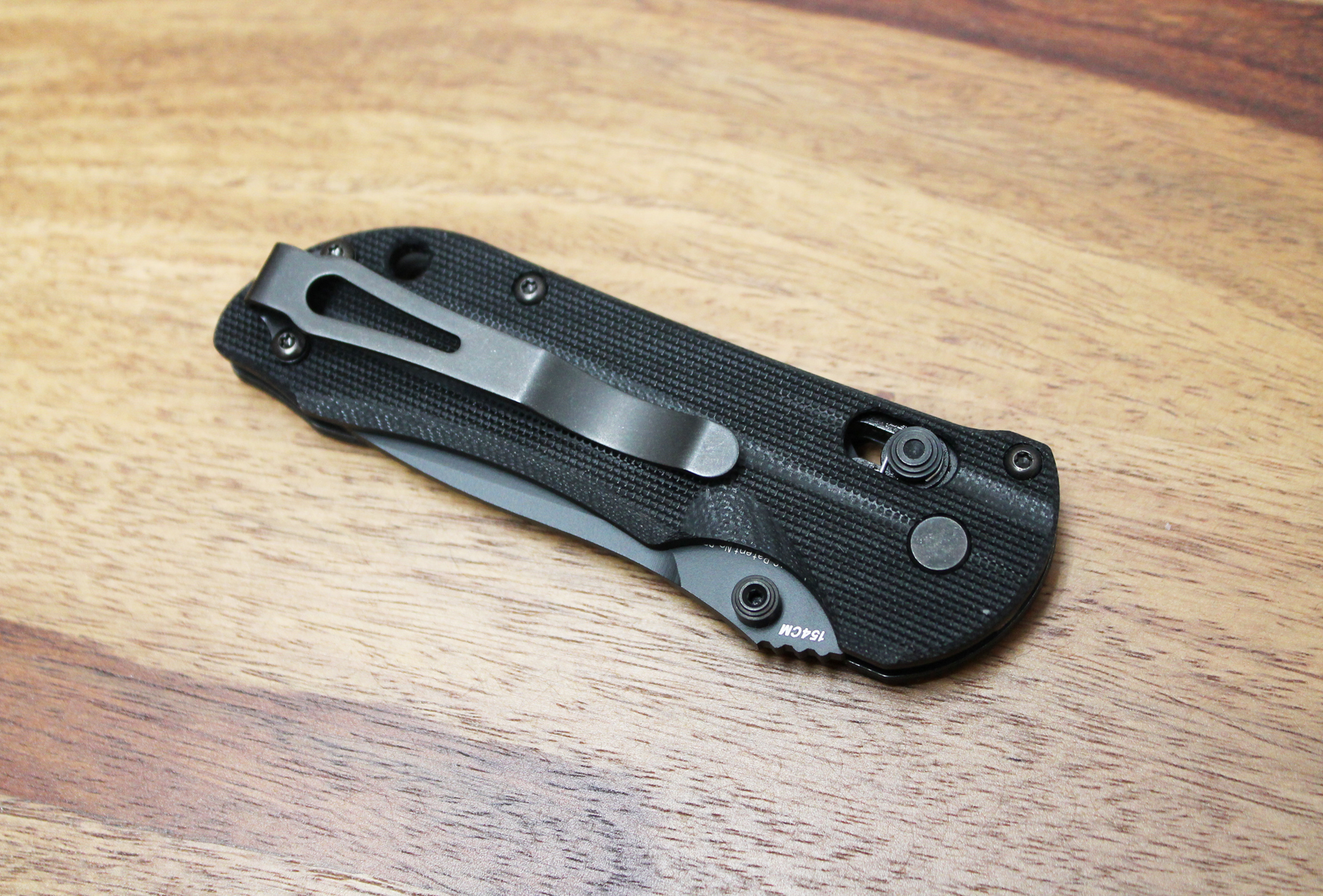 To me, the most notable feature of the 904 mini-Stryker is that it strays from the liner lock and lands on the Benchmade AXIS. This mechanism is very safe on lock-up. It is also bilaterally symmetrical (same on both sides), which, when paired with the clip, makes this knife unapologetically ambidextrous.