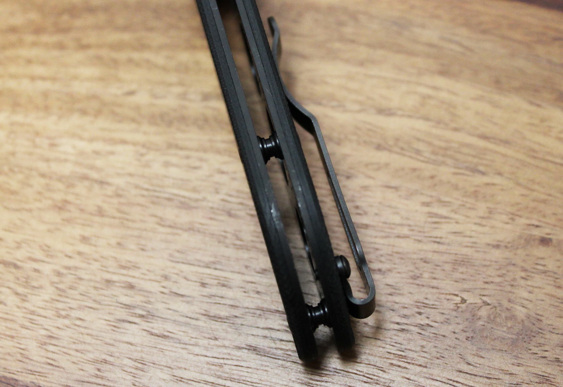 Oh, the pocket clip is tip-up, ambidextrous. Thank you, Mr. DeAsis! I dislike tip-downers for the extra manipulation upon draw. Further, they also promote detritus and corrosion in the pivot. Left side positioning is necessary for me, so this new deep carry clip is just right. After modifying the G10’s surface, I remounted the clip for support side carry.