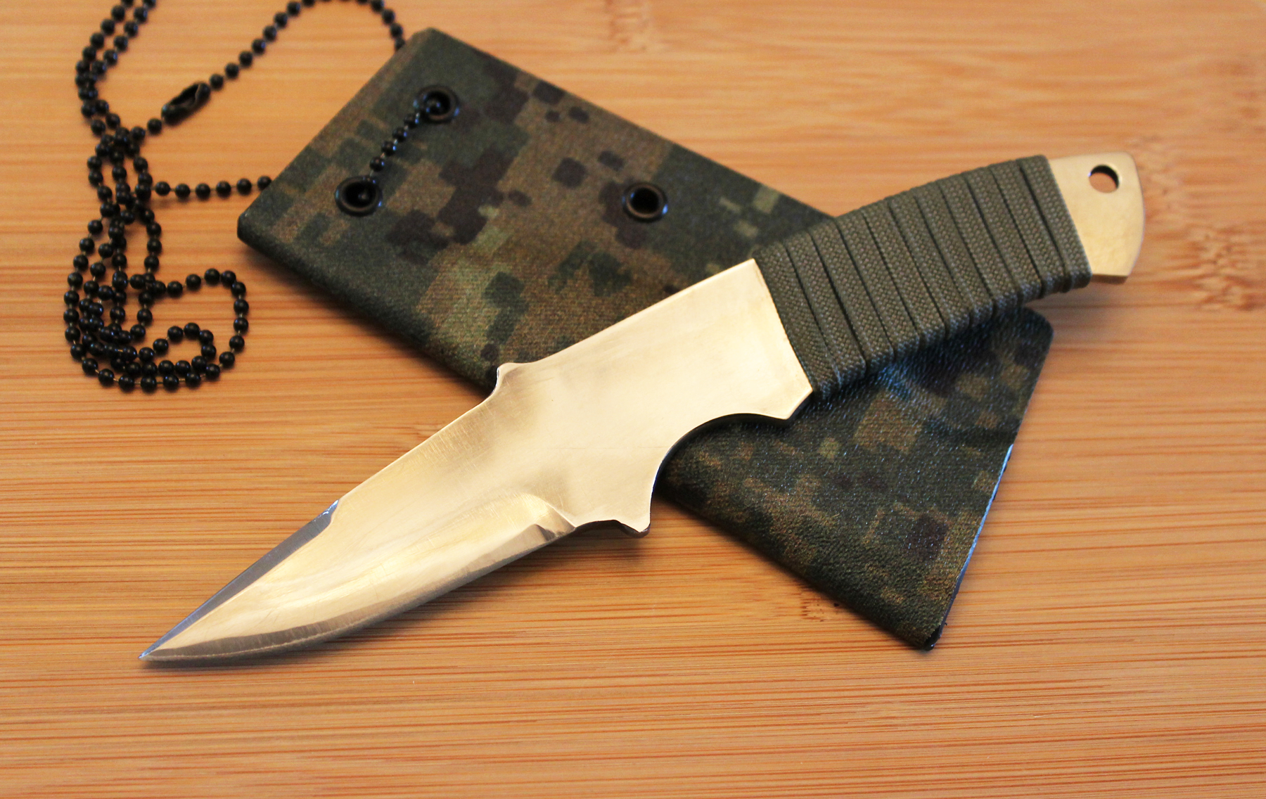 For good or bad, I am sort of known as the knife guy around the office. There was a time when I was retailing (well, wholesaling) blades to my co-workers (cheap bastards). Some of the more brazen still ask me for sharpening and other “warranty work.” Because of my affiliation with things pointy, a colleague of mine gave me a neck knife.