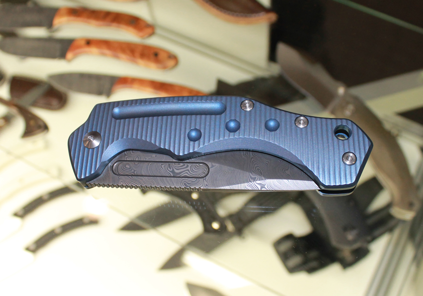 Fox Knives had this beautiful “art knife” in their collection of new items for BLADE Show 2015. It had a damascus blade and beautifully anodized aluminum handles. It was so stunning, I forgot to ask for its description as I peered through the Canon while attempting to get adequate shots of such a nice product of Maniago, Italy.
