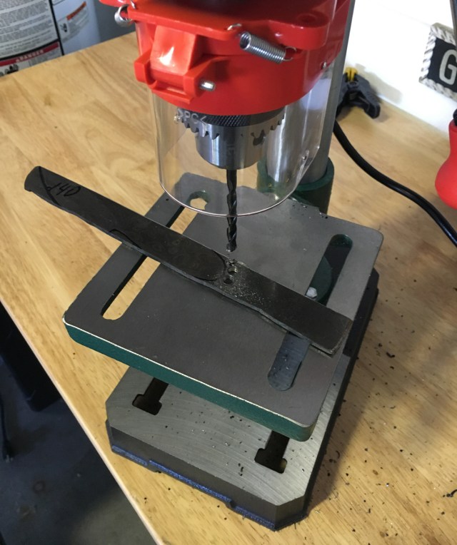 After the pattern was traced, I drilled holes just outside the ink lines to reduce the amount of time I would spend with hacksaw in hand. Trust me, if you can afford a steel-cutting bandsaw, get one. This project will definitely require some human exertion.